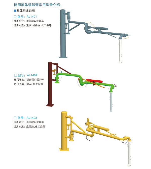 陸用流體裝卸臂具有轉(zhuǎn)動(dòng)靈活,密封性好,承載力強(qiáng),能使用較為惡劣的環(huán)境等多種特點(diǎn),鶴管廠家小編講解陸用流體裝卸臂是用于裝卸平臺(tái)與公路/鐵路槽車之間傳輸液體或氣體產(chǎn)品的專用設(shè)備。