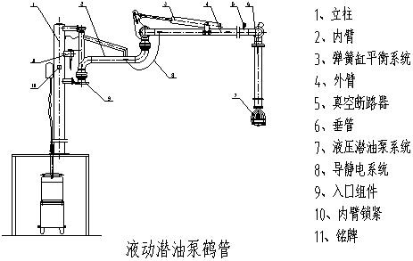 適用于汽、煤、柴油、液態(tài)化工介質(zhì)的汽、火車頂部卸車, 可選配潛油泵(液動(dòng)潛油泵、電動(dòng)潛油泵)。 |