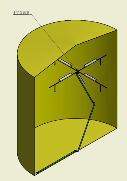 (6)浮筒,為全封閉的空心長(zhǎng)型圓通,重量輕,避免“十”字分流器碰到罐壁。